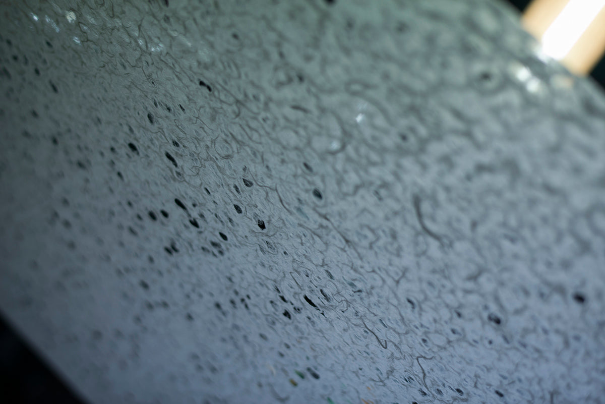 阿波和紙の麻落水紙は麻の繊維を漉きこみ水滴を利用してレースの様な表情の和紙です。
