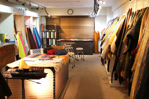 ショールームには、te sahoやその他 定番から新作まで常時300点以上の革サンプルを展示おります。